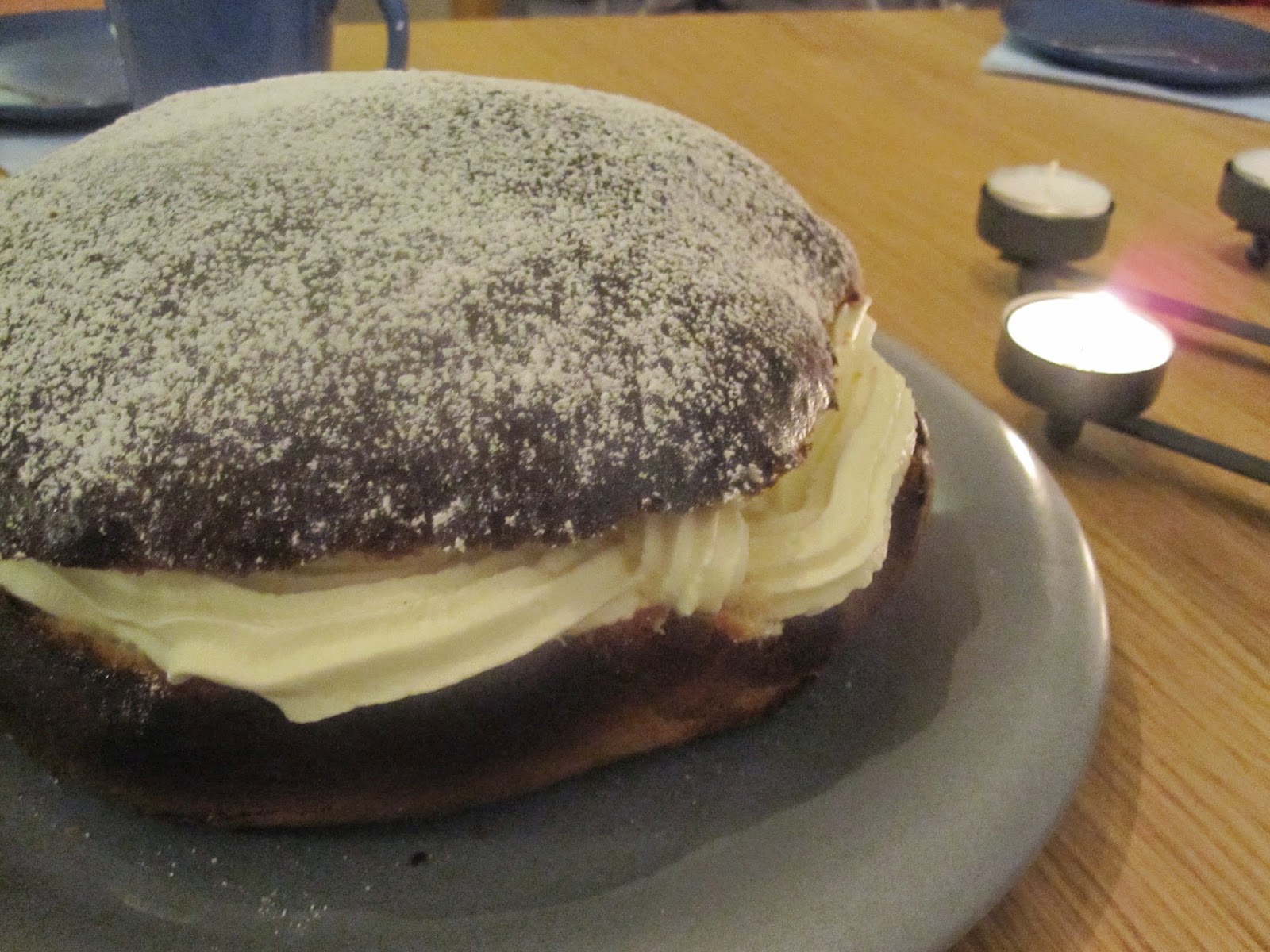 Tårtan var inte så svår att göra även om det fanns några besvärliga moment. Jag tycker att det är lite besvärligt att dela kaka i tre jämna och fina tårtbottnar, men det gick faktiskt bra. Tänk bara på att vänta tills kakan svalnat helt innan man skär i den. Jag har aldrig täckt någon tårta med marsipan (eller sugarpaste för den delen). Jag fuskade lite grann för jag hade faktiskt köpt ett färdigt marsipanlock. I Tv-programmet Hela England bakar här om veckan så skulle de baka just svenska prinsesstårtor, men de var tvungna att göra sin egen marsipan och färga den grön. Jag lyckades inte få min marsipan snygg runt om, kan det bero på att det var köpelock och inte lika elestiskt som hemmagjord? Uppe på var inga problem, men hur får man den slät runt om? Min blev veckad! Jag gjorde istället en chokladdekoration ovanpå som jag hoppas fångade blicken så att gästerna inte skulle lägga märke till vecken. :-)